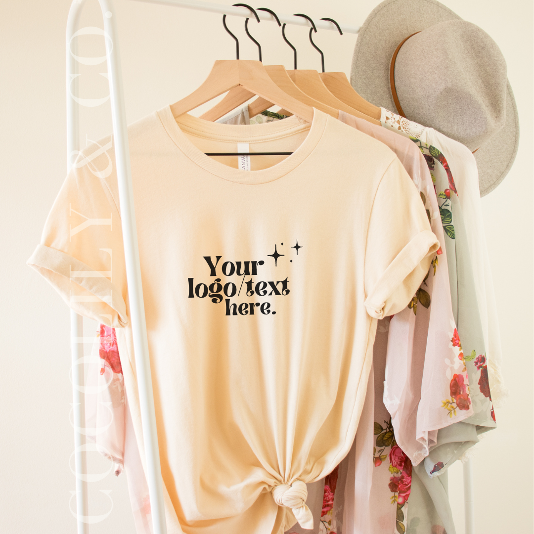 Your logo or text placed on a custom tshirt.